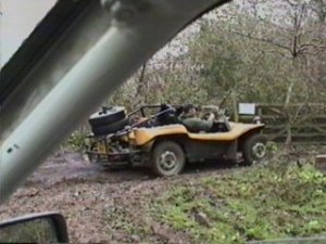 The MCC had threatened to cancel Crackington if the locals doctored it too much. They responded by dumping one tractor load of slurry on the upper surface instead of the usual two. It seemed to do the trick and the hill was competitive without being impossible. It was reckoned to be rougher though and took its toll on the Falcon contingent. Geoff Jackson had a half shaft go and although Mike Pearson had a spare it was the wrong sort. He managed to find one out the back of a local garage and get down to Newquay nice and early for dinner. He was joined by Tom Goggin who retired when his clutch wouldn’t disengage. Punctures were pretty prevalent. Matt Clarke experienced the joys of being winched up a section when Ken Payne’s Golf lost a tyre and Neil Bray had a similar fate. Mike Hayward got out of the top OK, a great achievement, as he had to do a re-start in what is far from the most suitable car. Pumping the tyres up, whilst the other Michael ran back to do some videoing, Mike found a puncture on one of the rears. Unfortunately the remaining spare was flat, leaving Michael to demonstrate his skills as a tyre mechanic before they could continue.
