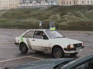 The trial returned to Bude for the first special test. A wiggle woggle around the cones of a deserted car park after a fight to get through the centre of town crowded with Saturday shoppers. David Heale was voted one of the most spectacular, lifting the front wheel of his Escort a foot of the ground before slowing when the passengers clip-board got stuck under the pedals. The lady concerned was Mark Hobb’s wife who complained hadn’t let her finish making a phone call! Near neighbours Stuart and Andrew were in trouble again, wrong slotting and going the wrong way around the final bollard.
