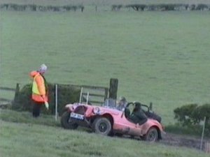 Special Test 1 took the form of a quarter mile regularity set at 7.5 mph all on a loose slippery track incorporating both a ninety-degree right and ninety-degree left turns. Despite the notorious inaccuracy of trials car speedos five competitors managed to drop only one second penalties, the most distant attempt being some 34 seconds adrift of target. Straight into Section 3 on the aforementioned grass covered clay hillside. The Alderson Troll made the first attempt but brain fade caused an embarrassing failure when the Troll attempted to mount a bank, which could easily have been circumvented in the early part of the section. John Bell, another ACTC expert, followed suit in his Escort a few cars later. The section was sub divided at 12 – 9 – 6 – and 3. For a long time it looked as if three was going to be the best score. But right at the end of the entry both Giles Greenslade in his Sunbeam and event sponsor Murray MacDonald in his 1300 Beetle mastered the hill. Section 4, a little further over, had a restart for classes 7 and 8 followed by a steep bank, which proved impossible to climb from such a short approach. The other classes were more fortunate and John Bell made up for his previous faux pas by cleaning the section. Greenslade, MacDonald and Rob Cull, Midget, joined him.