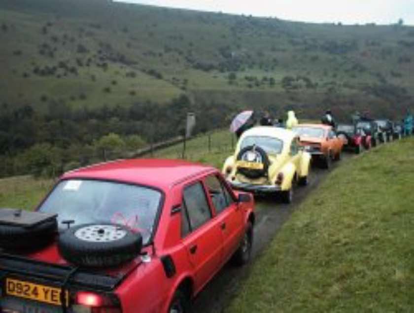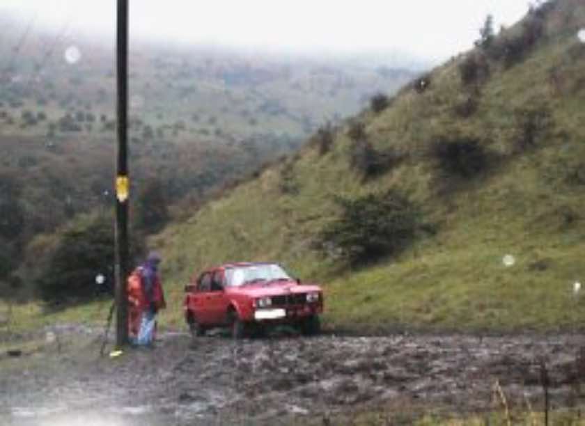 The old hill was in fine form in the rain and drizzle. The first challenge was of course actually getting to the start line. You certainly weren’t going to do it by following the instructions in the route card, which directed you to go around the telegraph pole and approach the start line from the direction of Litton Mill. With the grass an absolute quagmire the only way was to take a run down the approach track, aiming for the gateposts and backing down the section to the line if you were fortunate enough to reach them. Even then quite a few couldn’t get to the start and one really pitied the poor class ones. All credit then to Mike Relf, who not only got his Mitsubishi to the line, but got a fair way up the hill as well. A much better effort than Brian Partridge who made a right pigs ear of things, sliding down towards Litton Mill with spinning wheels in a crescendo of revs. Duncan Walsh made the first clean climb in his special and Steve Austin was the first saloon clear in his 1641 Baja, which unfortunately broke its diff later in the trial. There were only two Volvo’s in the trial and they both played football with large rocks. Rob Wells dislodged the boulder up by the bush at the top, creating a chicane for those following. Later Tony Branson got a bit out of shape coming down the escape route, dislodging bits from a stone wall in the process. Stuart Harrold was also in trouble coming down the escape road, scaring the life out of driver and passenger as the Troll slipped sideways (writers note – I can remember doing the same on the White Peaks once).