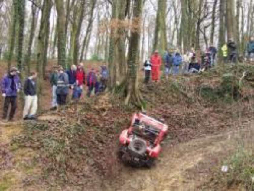 Catswood was a stopper in the woods before Merve’s Swerve, reached after a nice long trek along some muddy tracks through the trees. There was a restart for classes six to eight but this really didn’t make much difference, as the lower classes couldn’t build much speed through the “chicane” anyway. The challenge here is the bank across the track. The ruts looked deep and muddy although there was quite a bit of grip for the later runners as the early numbers cut down to the solid stuff. About half the class eight’s went clean but the best anyone else could do was Bill Bennett in the J2 who got to the one.