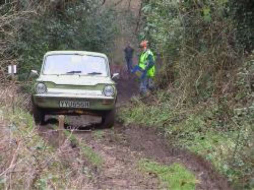 There was no Rushmire this year but there was still a holding control just along the road, manned by Mr Moss senior and an enthusiastic local policeman who was very interested in all the cars. Axe has got more difficult in recent years and took a few victims once again if they had low ground clearance or didn’t build enough momentum to power through the mud and ruts just sort of the summit. There are a few pretty big steps as well, which can easily blow out a tyre or dent a rim. John Bell was caught out here as were the low slug MGB’s of Gill Hayward and Andy Biffen. The leading Front Wheel Drives all made clean ascents, albeit at the expense of a dented rim for David Haizlden. Neil Bray arrived at the top with both a front and a rear puncture and a shattered wheel rim and was grateful for the help from “Team Sargeant” in getting him on the road again.
