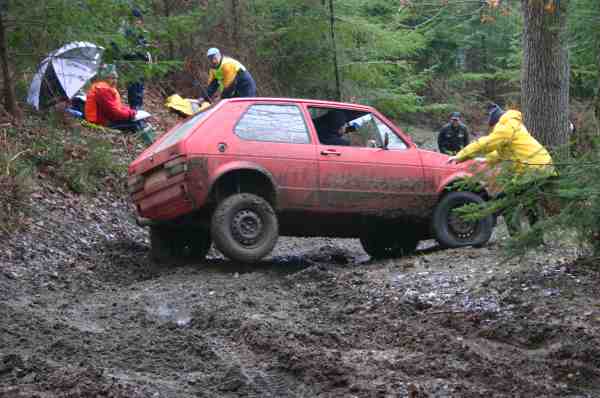 The MCC had been concerned they would be able to use Wooston because of PR problems with the exit road. Fortunately these problems were solved and classes seven and eight were able to tackle the steep hill after the fork. Michael Collins had a go at this route as well in his Golf and was well on his way to getting up the hill when he realised his mistake and had to back down. This was a shame as his fail cost him a gold and probably the FWD All-Stars the team award as both Paul Allaway and Dave Haizelden went round clean.