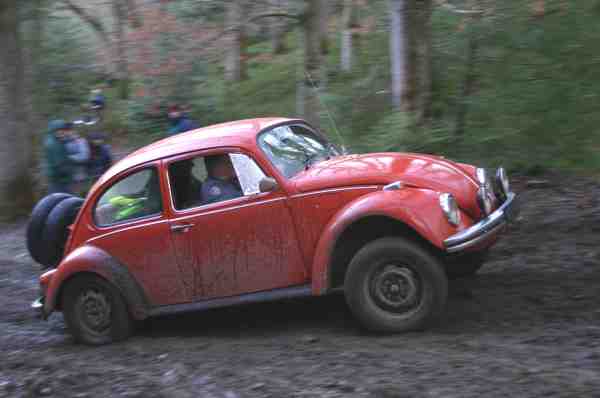Class 5’s were denied the challenge of the upper reaches and deviated off with the ones and twos. Colin Sumner probably wished he was back in his Morgan. He had to do the full hill in his class four Beetle and couldn’t get out the top. Clinton was easier, with only the upper part of the section being used and the restart on the level so it didn’t trouble the scorer too much.
