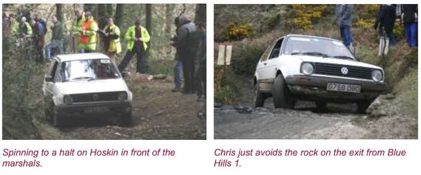 Finally Blue Hills, where we prepared by finishing the last of our refreshments at Perranporth. Last year we disappointed the spectators by taking the class 0 soft option of the old hill, but this year there was no avoiding the main event. As you descent to the start, the view of the hill opposite with ant like cars bumping over the ruts is pretty daunting, but we were encouraged by getting round the first part (Blue Hills 1), although looking at Michaels pictures there was a lot less margin than we thought at the time.