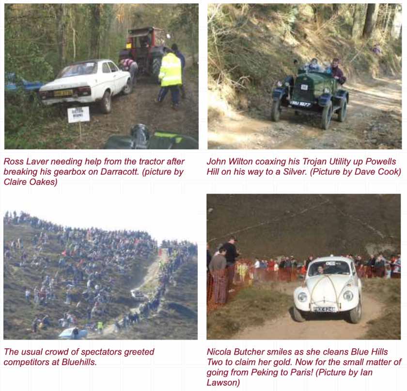 Emma Robilliard won a very wet Camel Classic Trial in her Class 4 Beetle on the 9th December. It poured with rain all day and one of the three new sections in the woods had to be cancelled. It seemed the conditions may have made the feared Clinnick easier though. Perhaps the rain washed some of the mud down the hill as seven Escorts cleaned the section and some even came out of the top, something that has never been achieved before. The Camel continued with its index system to decide the awards for the event, with ACTC awards being decided without this applied. A new innovation was applied this year. Some of the markers were moved down some of the Camels very steep hills after classes 6,7 and 8 had passed to give the lower classes a chance.
