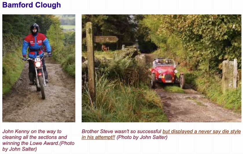 The two sections at Clough Mine were muddy affairs. Everyone did the first one, in front of Dave Cook’s lens. Dave was the MCC’s official photographer for the event and as I am not sure of the arrangement he has with the club I have not used or linked to his pictures here. The nature of these sections was different to the MCC’s traditional Derbyshire Fayre but with all the problems with officialdom may well have to feature in the future if the old favourites are denied.