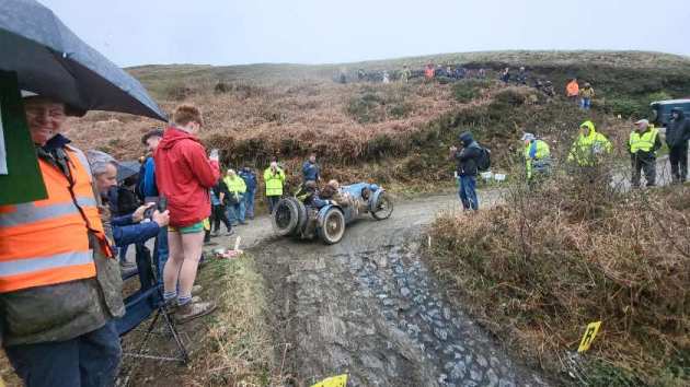 When the cars came along the majority couldn’t get back onto the road under their own power and had to be extracted by the usual method of a group of officials and volunteers pulling on a rope.