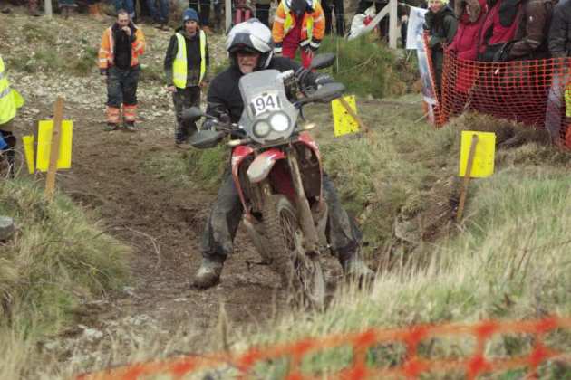 Up until now the event had been an “easy” Lands End. However Eddys shattered the medal dreams of many solos and was to prove their most expensive section with many footing or falling off on the hairpin. For those that managed to get that far the section then climbed a muddy tree lined track before hitting a vicious bump as it emerged into the farmyard.