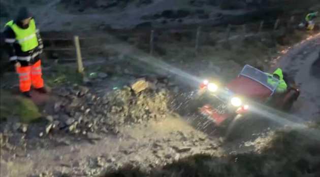 By the time it was all over it was too dark for the ever professional winch crew to pack up their equipment so they went home to dry out, coming back the next day to retrieve their machinery.
