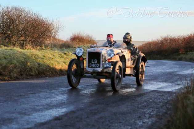 The village at the top of the hill is always a welcome sight. It had started to get light by the time the cars arrived with the prospect of refreshments and a welcome toilet. Except for pre 41’s all the cars had a restart but Jonny Smith drove straight through in the KIA as he was to do on the other restarts. But he did get this rather unsuitable car to the finish!