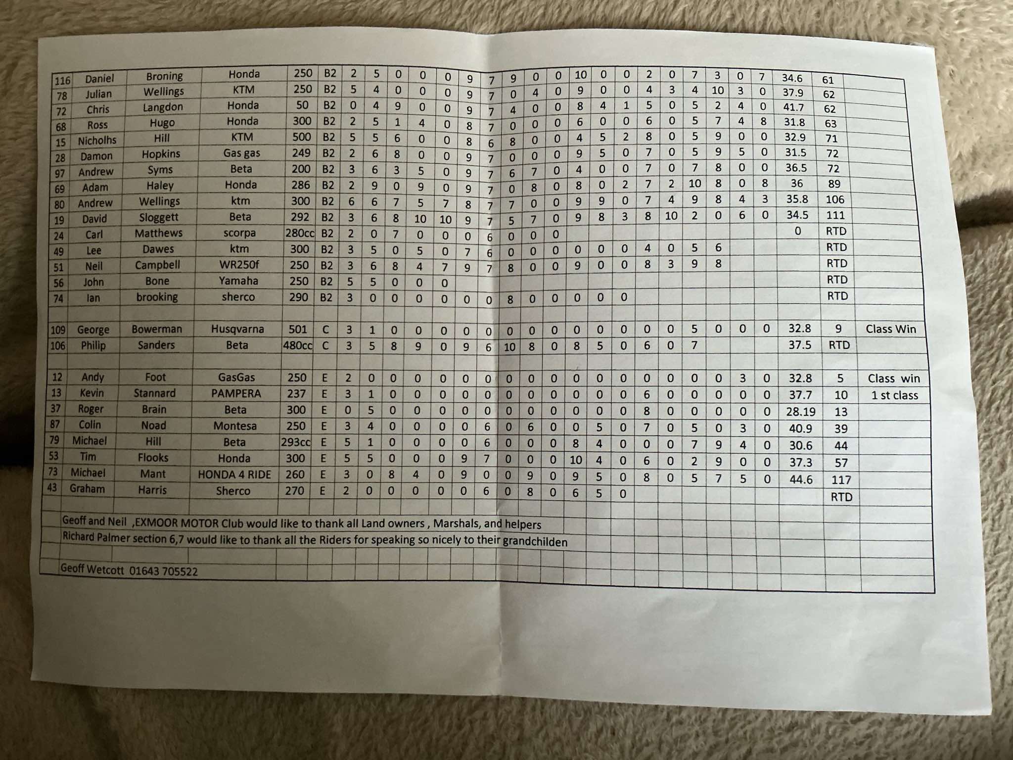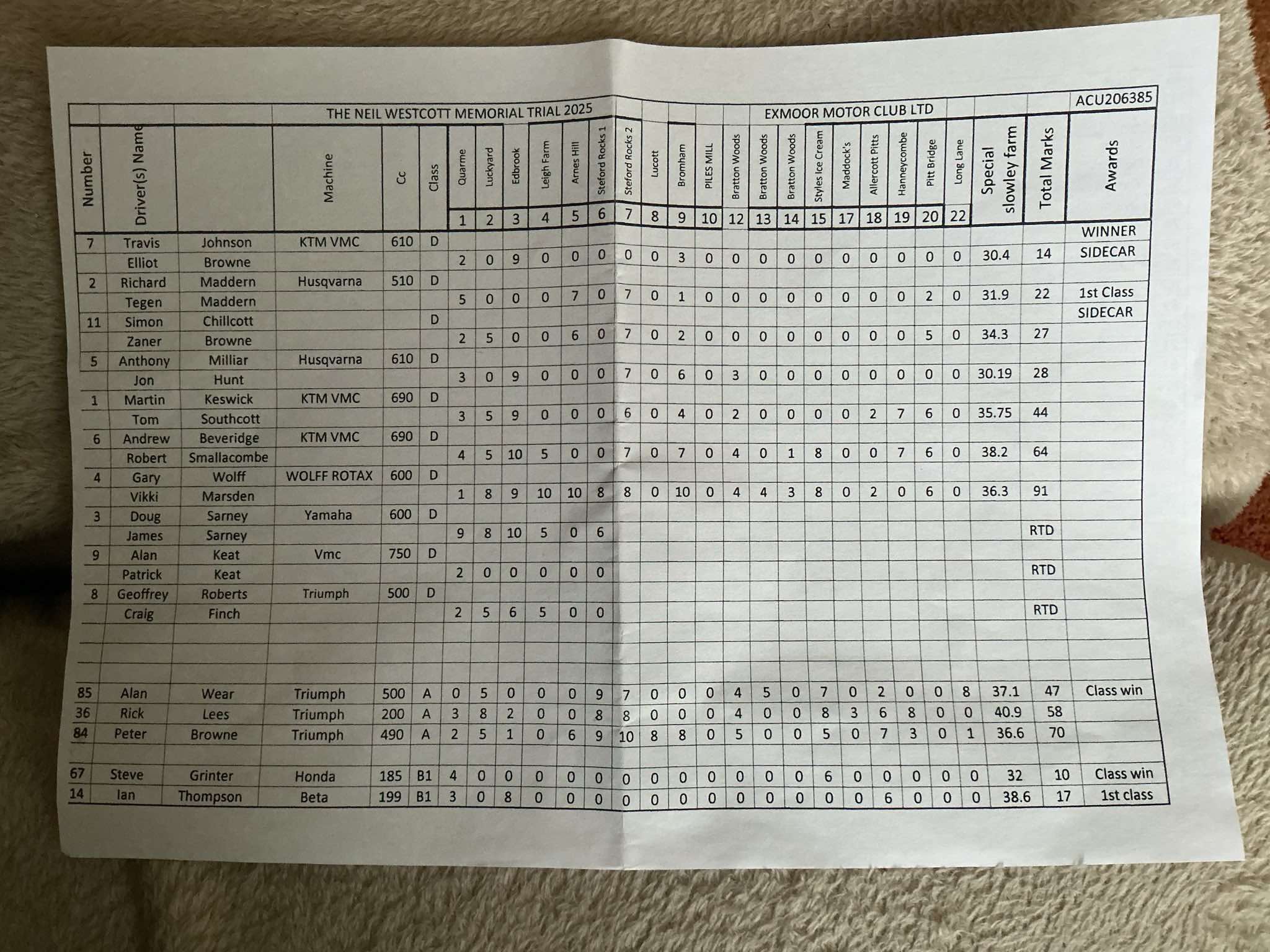 Strong Pouncey league contender John Reeves had the misfortune to drop out of overall contention when he dropped a six mid event but still finished eighth in a class over fifty in B2, behind Neil O’Connor who was fifth on his KTM.