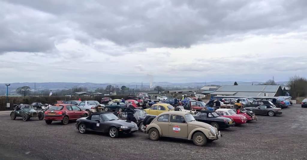 The Car park of the Greendale Farm Shop is full of Exeter Trial competitors as dawn was breaking (Photo by Sam Lindsay)