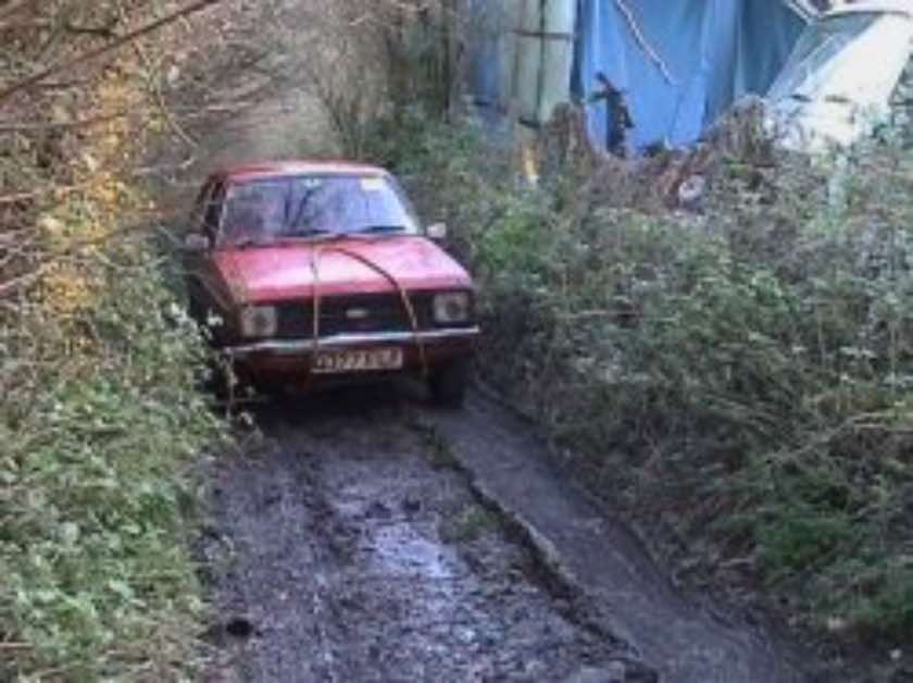 Elwell was the final offering before lunch. Everyone remembers last year when it was very wet and muddy and it was so difficult to get across the field at the end. The surprise was at the bottom this year. The farmer had built a concrete hump just before the water splash. It’s hard to know why, maybe it’s a culvert or something. Anyway it was a challenge for anyone without plenty of ground clearance. The Falcons had become split up by now. Murray and Neil were together, Simon was a few cars back, followed some way behind by Michael and Fred who had stopped for petrol. There was quite a queue when they arrived, waiting for Philip Roberts and his dead Escort to be towed out. The halfshaft had moved on the bearing and they had lost drive. Later on Mike Hayward saw Philip and told him about the autocross trick of putting a blob of weld just behind the bearing. Murray and Neil got away OK but there was another delay when Simon got his Skoda stuck firmly on the hump and had to be towed off. The marshal at the foot of the hill had warned Simon about the severity of the hump. He tried to ease the Czech wonder climber over slowly, fearful of damaging the petrol tank. Unfortunately it bottomed out with all four wheels in the air Next time Simon go faster and fly over it like the rest of us!
