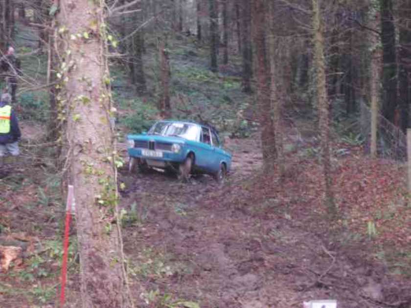 The four sections at Helligan and Shellwood saw the last of the rain and the retirement of Ian Moss when his Imp lost all its oil pressure. In class one we had also lost David Symons and David Haizelden. Colin Perryman was still going but definitely came into the walking wounded category, as there were horrible noises coming from his BMW’s diff and he was limited to 25 mph on the road.