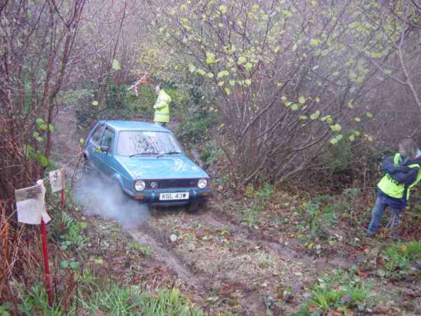 Ian Cundy, pictured here on the first section at Bishopswood, won Class 1Colin Perryman and David Heale failing to make the corner on Hustyn Woods 1. They weren’t alone and Colin went on to be fourth in class 3.Ian Moss had problems with the water on Hustyn 2 and retired with no oil pressure after the Shellwood sections.Pete Barr blasting up Hustyn Woods 2, trailing steam from the water at the bottom.Richard Dawe neede all his friends and a tow from a Range Rover to get out of Trerice. Despite this the Camel was not a rough trial.Ross Norman reversing down the last section at Churchwood in the gathering gloom.