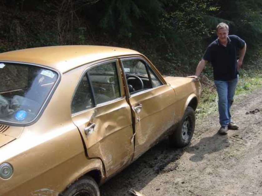 The tree was to take its toll. Not just on the section but also for the failures who dropped back onto the lay-by and were encouraged by the marshals to have a second go. Numerous saloons sustained body damage, the worst being Simon Groves who came near to ripping the side off the gold Escort.