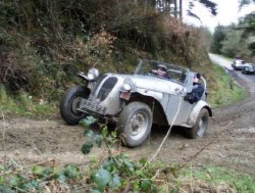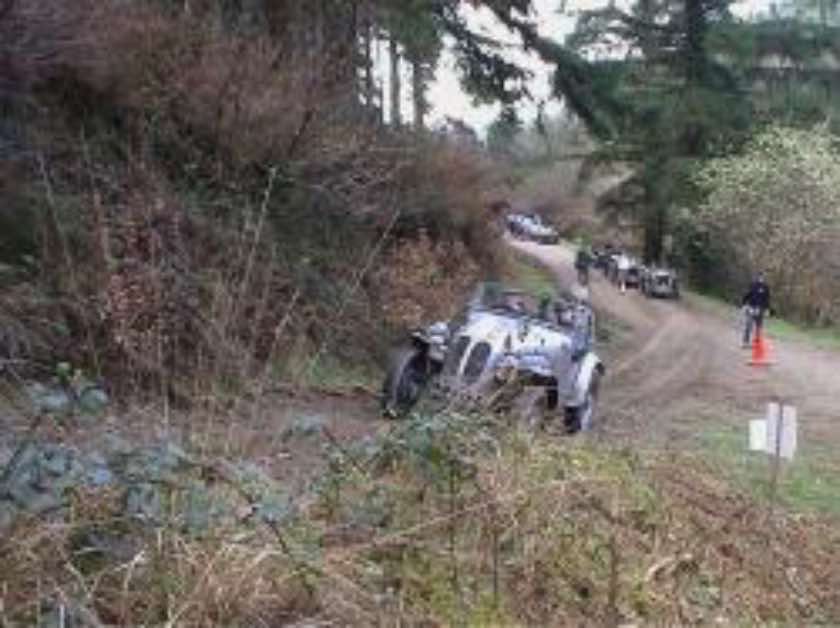 Class Eight competitors arrived at the foot of Treworld to be greeted by a friendly marshal asking them if they had read their route card! Closer examination revealed that only the yellows had to stop here, so the class eights were able to blast up without any difficulty, although at the expense of a ruined rear tyre for Dudley Sterry.