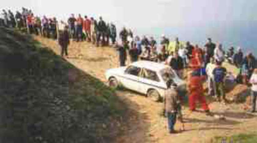 In consequence the banks relieved a fair amount of bashing, and early runners Mike Relf (Opel Manta) and John Bennett in the immaculate class 4 Renault, did quite a bit of damage to their cars. Clive Booth was spectating here and thought the Liege’s went really well, being nimble enough to negotiate the deviation with ease. Dave Nash and Neil Bray weren’t so lucky and were unable to get away on the restart. As the cars went through so much of the loose material was blown away, but then they started to dig holes, and by the time Dave Haizelden came through as the last car it looked as though the section had been cluster bombed!