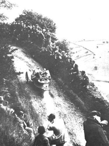 To recap this was a brief piece about the hill which was used under the name “Jenkins Chapel” back in the 30 and resurrected by the MCC as “Corkscrew” in 1993. It’s a rough, narrow hill with two hairpins, followed by some nasty steps. I published a couple of pictures which I reproduce here. The one of Dudley Sterry was taken by our own Mike Furse a few years ago and is definitely Jenkins. I scanned the other one out of a book and this is the image that caused the controversy, and really set the letters pages of Classical gas on the Net going with some most enjoyable correspondence, with many famous “trials families” participating.