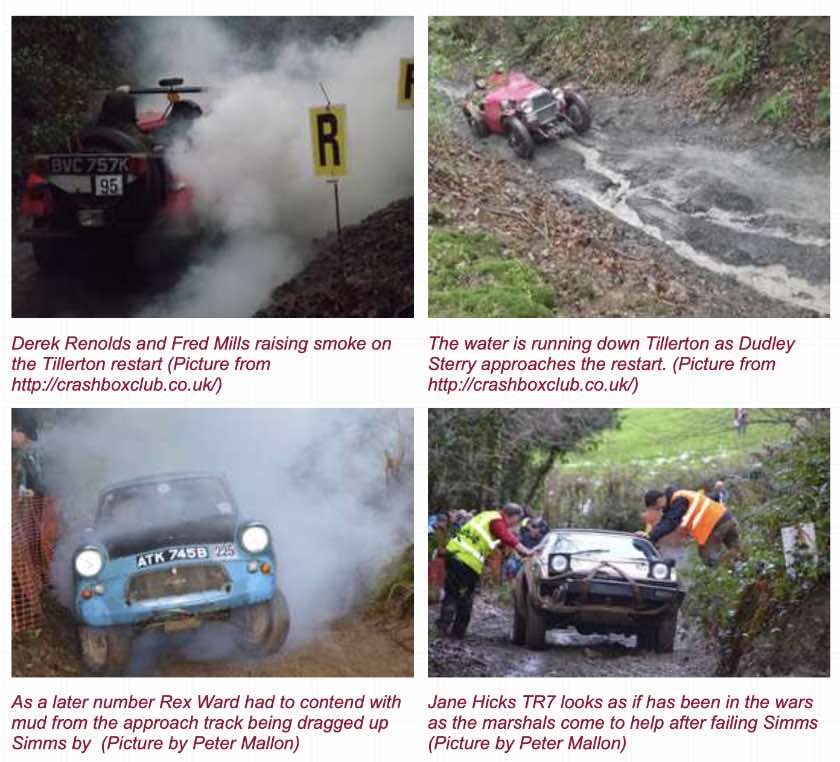 The heavy rain started to ease as the event approached its breakfast break via Stretes and Bulverton Steep. Neither were a problem but the experienced Brian Alexander was penalised for not stopping on the Bulverton restart.