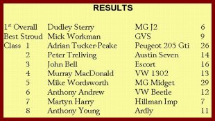 The special test was another “go slow” affair through a puddle. The section was a nice challenge however, making excellent use of the venue and ending with a steep bank as a sting in the tail. The results show three of the FWD cars clearing the section which is surprising as most of the other cars in the lower classes failed apart from the on-form Bill Bennett.